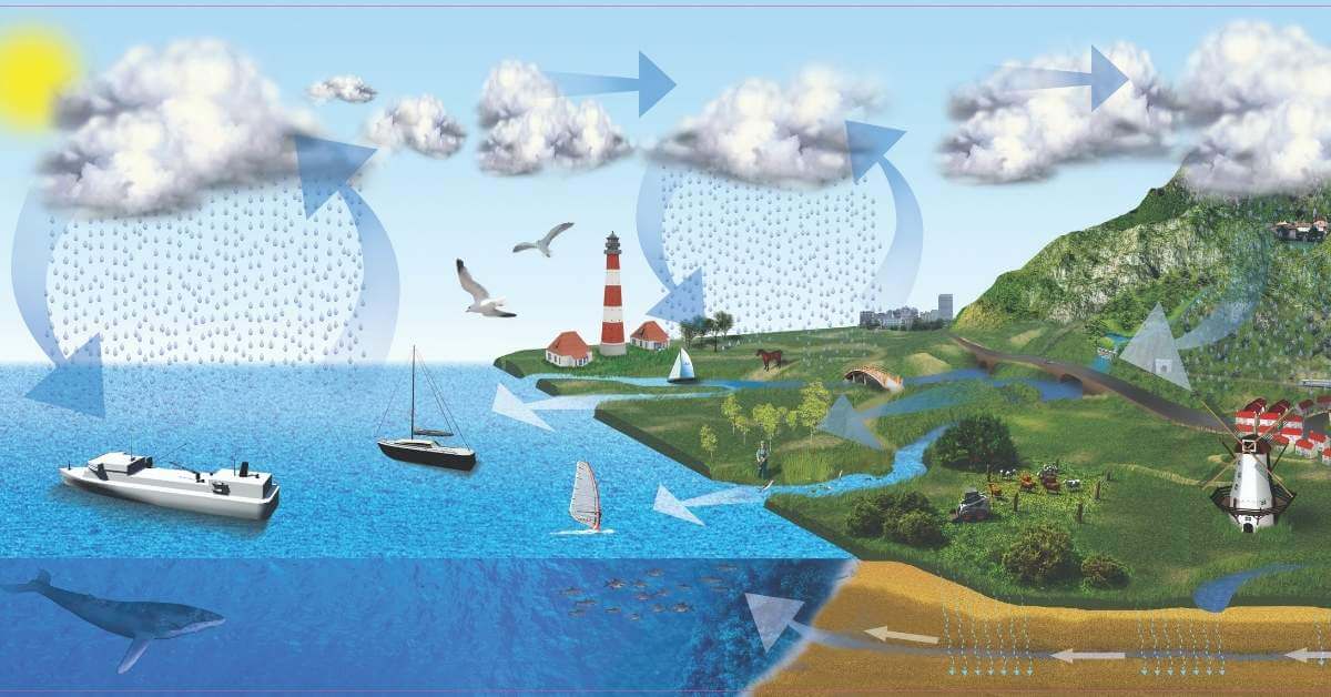 - Infiltração e Escoamento: Parte da água penetra no solo e outra parte retorna aos rios, lagos e oceanos.