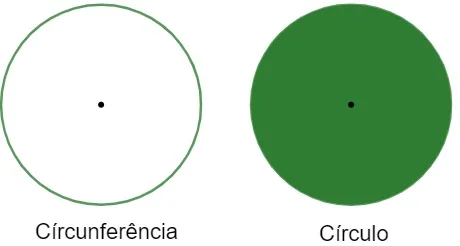 Explique com suas palavras qual é a diferença entre círculo e circunferência.