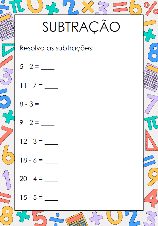 Atividade de Subtração Simples