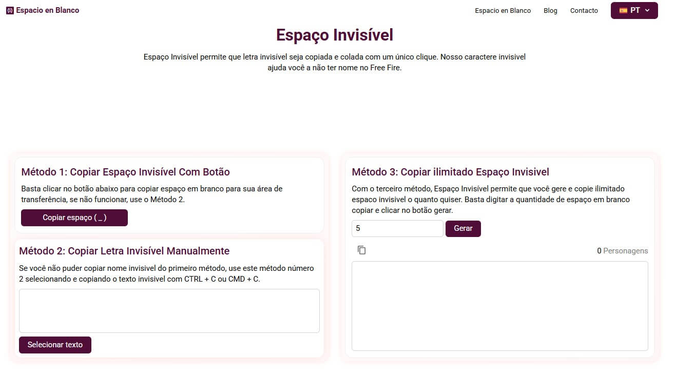 👉 https://espacio-en-blanco.org/pt - Copie o caractere de espaço invisível
